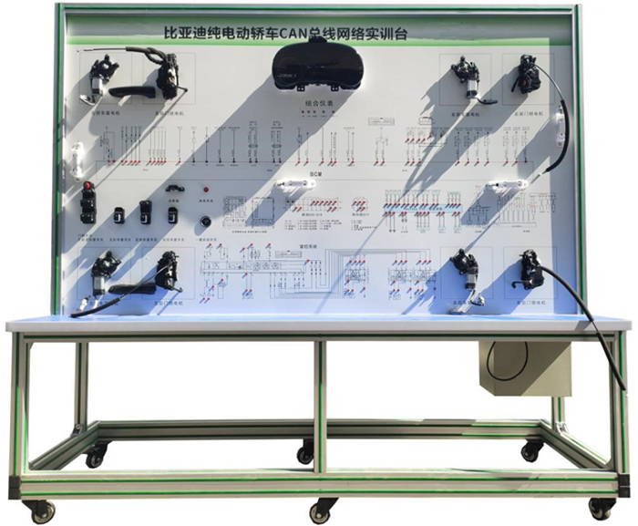 新能源比亞迪車載網(wǎng)絡實訓臺采用比亞迪e5 電動汽車CAN-BUS系統(tǒng)等真實器件制作的實驗實訓臺架,可電動汽車CAN-BUS系統(tǒng)相關的實驗實訓內容。適合于各類院校對純電動車CAN總線網(wǎng)絡系統(tǒng)理論和維修實訓的拆裝與維護、結構與原理認知、系統(tǒng)操作、功能動態(tài)演示、故障檢測與診斷教學需要。