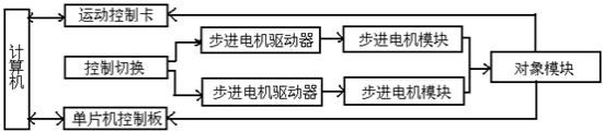二維運(yùn)動控制實驗平臺主要由步進(jìn)電機(jī)控制系統(tǒng)和電腦桌兩部分組成,結(jié)構(gòu)框圖如下圖所示:
