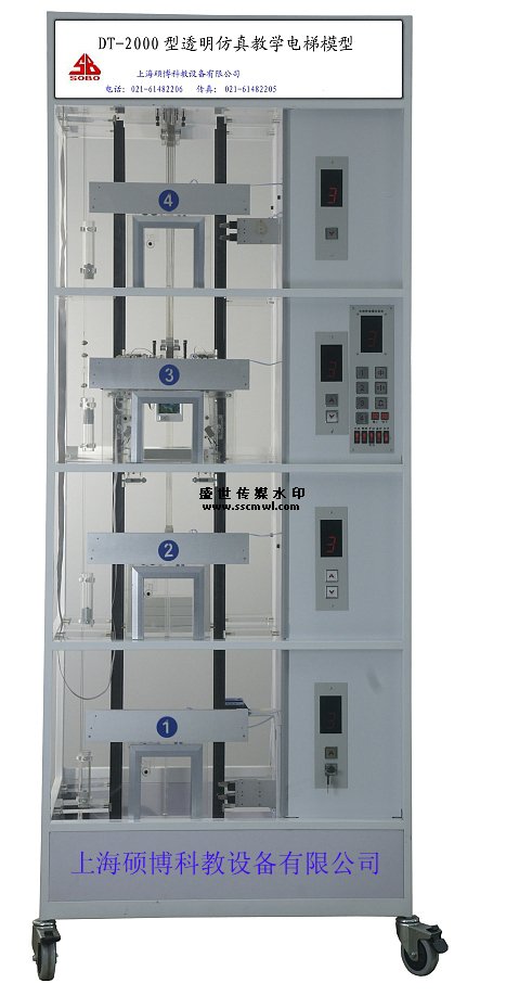 上海碩博公司的DT系列透明電梯是根據(jù)最常見的升降式電梯結(jié)構(gòu),采用鋼管焊接一體而成,表面經(jīng)過磷化噴塑處理、具有良好的結(jié)構(gòu)剛性。為了便于教學,電梯主要機構(gòu)部件均采用透明有機材料制成 (包括:限速器、轎廂、層門及門廳立面、轎門、轎廂、機房底板、導軌支架……)為了使電梯運行控制更加精密可靠逼真,設計了與實際電梯比例縮小的鋁合金轎廂對重導軌、及轎門門機導軌、層門導軌。