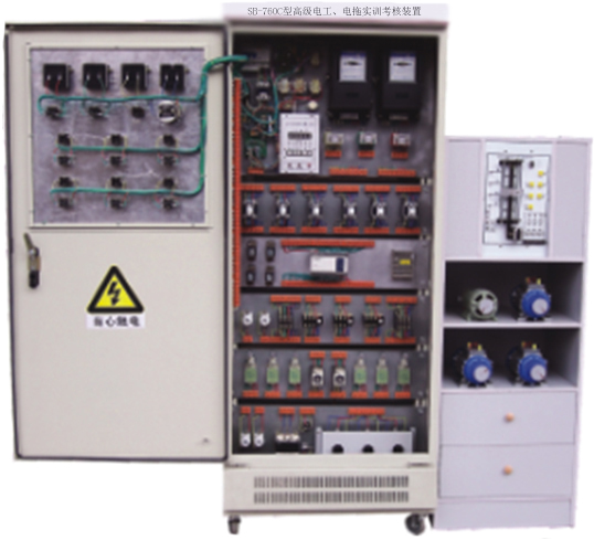 高級電工、電拖實訓考核裝置是按照勞動社會保障部頒發(fā)的“工人技術等級標準”和“職業(yè)技能鑒定規(guī)范”的內容要求,根據(jù)初級電工培訓考核的實際情況而設計的新一代集培訓學習、理論驗證、實際操作能力、考核鑒定于一體的多功能柜式設備。整臺設備以標準的電氣控制柜為主柜,利用柜體的雙面空間,布置電器 及配套實驗器材,能完成初級電工考核鑒定中的電力拖動控制與照明電路的實操項目,該電工、電拖實訓考核裝置堅持理論聯(lián)系實際的原則,突出技能訓練,注重針對性、實用性、科學性,經全國多家職業(yè)技能訓練中心、職校、技校使用證明,該柜體設計合理、實操方便,占地面積少。為延長電器的使用壽命,各電器的接點都與接線端子相連,再讓學生在接線端子上接線,連接電機、電器來完成各項控制實驗,有效降低材料消耗,延長使用壽命。該套設備適用于各勞動職業(yè)技能鑒定部門,同時適應各大、中專、技校、職校初級電工、電拖專業(yè)教學與實訓考核。