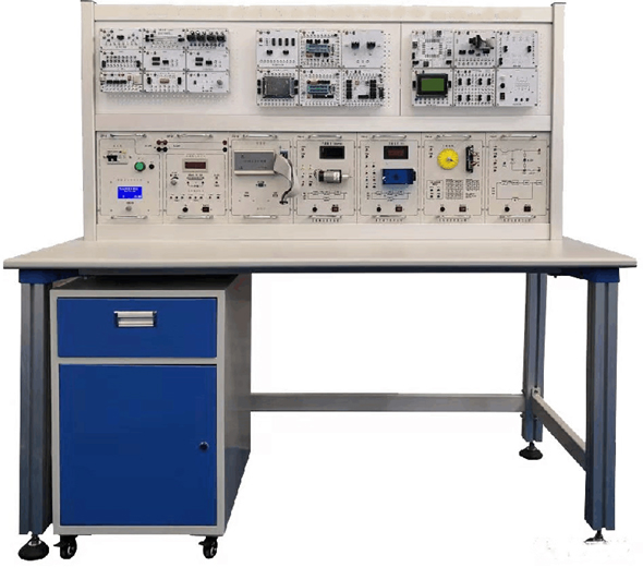 實(shí)訓(xùn)臺(tái)主要有實(shí)訓(xùn)桌和實(shí)訓(xùn)臺(tái)架組成,實(shí)訓(xùn)桌采用型材結(jié)構(gòu),桌腿采用4080型材,桌面為防火、防水、耐磨高密度板,結(jié)構(gòu)堅(jiān)固,造形美觀(guān)大方。面板采用鋁板結(jié)構(gòu),操作面板文字符號(hào)用現(xiàn)代彩色噴描技術(shù)處理,具有防塵、美觀(guān)、耐磨、不掉色等特點(diǎn)。