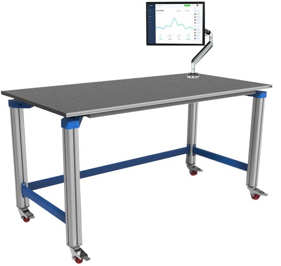 (1)采用工業(yè)鋁合金型材框架設(shè)計(jì),臺(tái)面為鋁合金型材操作板,單根型材截面20×80mm,型材槽間距40mm,桌腳截面70×70mm。