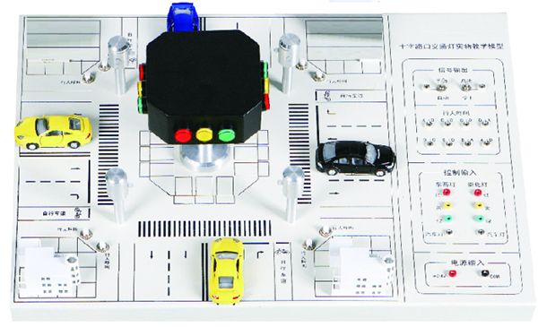 模型以實(shí)際十字路口按一定的比例微縮而成,配有道路模型、交通指揮燈、電氣控制接口區(qū)域等。具有指示和控制、啟/停按鈕、手/自動(dòng)按鈕、行人呼叫按鈕、四方向紅/黃/綠燈指示等功能。
