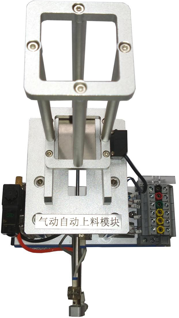 (2)系統(tǒng)由按鈕模塊、氣動(dòng)自動(dòng)上料模塊、傳輸線模塊和物料檢測及分揀模塊和輔助器件等組成。