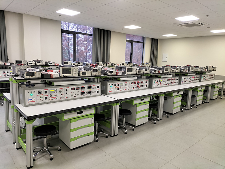 電子電工實(shí)訓(xùn)室實(shí)訓(xùn)設(shè)備,學(xué)生可以進(jìn)行各種電子實(shí)驗(yàn),如電路分析、模擬電路和數(shù)字電路的實(shí)驗(yàn),以及電子設(shè)備的測(cè)量和測(cè)試。同時(shí),實(shí)訓(xùn)室也提供了進(jìn)行電工技術(shù)實(shí)踐操作的環(huán)境,如電路布線、電氣設(shè)備安裝和調(diào)試等。
