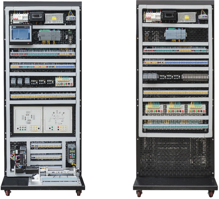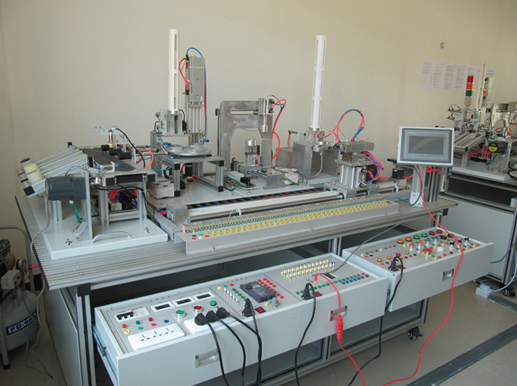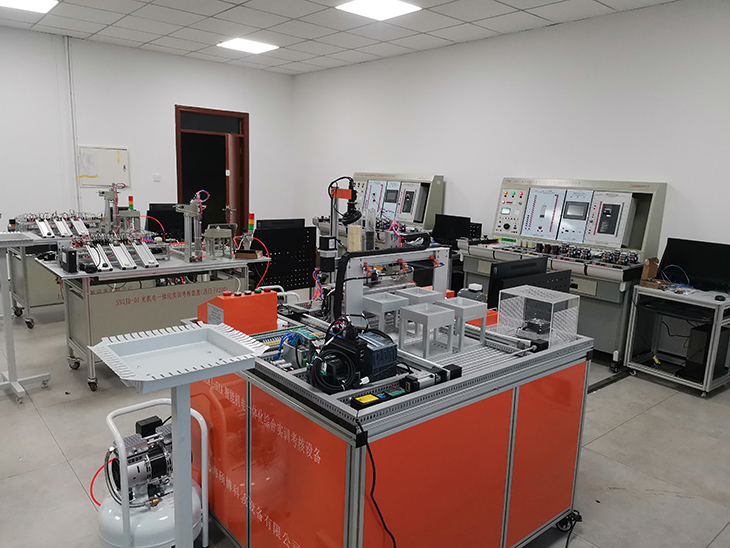 機電一體化實驗實訓裝置、PLC與自動化實驗實訓室設(shè)備自動化生產(chǎn)線實訓室、氣動控制實訓室、伺服控制實訓室、過程控制實訓室、仿真控制實訓室、自動化創(chuàng)新工作室等;能提供可編程控制技術(shù)、交流伺服驅(qū)動技術(shù)、人機界面技術(shù)、多自由度機械臂技術(shù)、網(wǎng)絡(luò)控制技術(shù)、自動化物流管理、虛擬仿真等自動化領(lǐng)域核心技術(shù)的實踐訓練;教學項目涵蓋單項技能訓練、綜合技能提升、創(chuàng)新設(shè)計能力培養(yǎng)、自動化新技術(shù)應(yīng)用等多個層面,為滿足學生技能訓練、教師實踐能力培養(yǎng)、企業(yè)員工培訓、技術(shù)研發(fā)與服務(wù)提供了有力保障。機電一體化實驗實訓平臺、PLC與自動化實訓室設(shè)備是《PLC控制技術(shù)》、《變頻器控制技術(shù)》、《組態(tài)控制技術(shù)》等課程的教學實驗實訓、課程設(shè)計、自動化綜合實訓及創(chuàng)新設(shè)計等實踐基地,也是技能培訓的教學平臺。滿足學生進行PLC實訓、課程設(shè)計、畢業(yè)設(shè)計等需求。機電一體化實驗實訓平臺、PLC與自動化實訓室設(shè)備主要功能是為學生提供可編程邏輯控制器(PLC)的相關(guān)實訓與實訓操作環(huán)境,幫助學生深入理解PLC的工作原理、編程方法、以及在工業(yè)自動化領(lǐng)域的應(yīng)用。