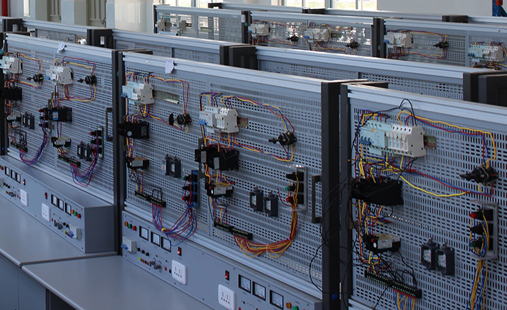電氣裝配實(shí)訓(xùn)室設(shè)備、電氣自動(dòng)化實(shí)驗(yàn)實(shí)訓(xùn)室設(shè)備主要服務(wù)于電氣自動(dòng)化技術(shù)、機(jī)電一體化技術(shù)、機(jī)械制造自動(dòng)化、數(shù)控技術(shù)等專(zhuān)業(yè)的電類(lèi)課程的實(shí)驗(yàn)實(shí)訓(xùn)任務(wù),為教師從事科研、教學(xué)研究服務(wù),并承擔(dān)著青年教師下電氣實(shí)驗(yàn)實(shí)訓(xùn)室鍛煉的任務(wù)。電氣實(shí)驗(yàn)實(shí)訓(xùn)室一貫秉承“嚴(yán)謹(jǐn)治學(xué)、勇于探索、大膽實(shí)踐、科學(xué)負(fù)責(zé)”的原則,堅(jiān)持培養(yǎng)學(xué)生獨(dú)立思考、獨(dú)立操作、獨(dú)立分析問(wèn)題的能力,培養(yǎng)運(yùn)用基本理論分析處理實(shí)際問(wèn)題的方法。電氣裝配實(shí)訓(xùn)室、電氣自動(dòng)化實(shí)訓(xùn)室的建設(shè),已逐步形成涵蓋多學(xué)科、多專(zhuān)業(yè)的實(shí)驗(yàn)實(shí)訓(xùn)教學(xué)平臺(tái),根據(jù)學(xué)科發(fā)展和人才培養(yǎng)的需求,建立起了一個(gè)合理分工、緊密銜接,由基礎(chǔ)到綜合的實(shí)驗(yàn)實(shí)訓(xùn)教學(xué)體系。電氣裝配實(shí)訓(xùn)室、電氣自動(dòng)化實(shí)訓(xùn)室分別為電工技術(shù)實(shí)驗(yàn)實(shí)訓(xùn)室、電子技術(shù)實(shí)驗(yàn)實(shí)訓(xùn)室、高級(jí)電工實(shí)訓(xùn)室、微機(jī)控制與仿真實(shí)訓(xùn)室、電氣控制綜合實(shí)訓(xùn)室、自動(dòng)生產(chǎn)線(xiàn)實(shí)訓(xùn)室、數(shù)控設(shè)備維修實(shí)訓(xùn)室、電子產(chǎn)品裝配實(shí)訓(xùn)室。