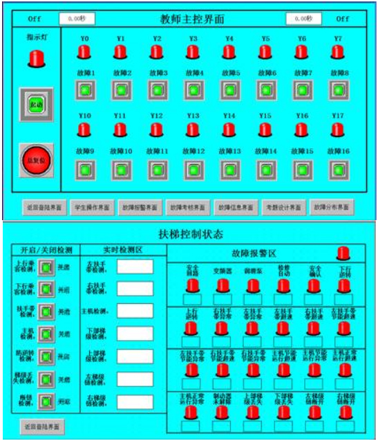 2.電氣控制采用西門子PLC系統(tǒng),驅動采用變頻節(jié)能控制;智能故障考核系統(tǒng)采用10寸真彩觸摸屏。系統(tǒng)有教師登陸和學生登陸功能,16個故障設計功能,定時排故,考題計分功能,扶梯模型配套有電氣故障點設置,學生可以通過故障現(xiàn)象在裝置上檢測、查找故障點,并將其修復。通過在該實訓裝置上的實訓訓練,使學生能夠真正學習和掌握自動扶梯的安裝維修保養(yǎng)技術及技能。具備故障反饋、故障代碼查詢。