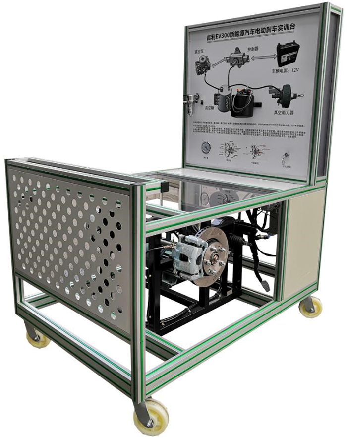 吉利EV450電動車電動真空泵(2件,1件解剖)、電動真空泵控制單元、真空壓力傳感器、剎車真空助力器、剎車總泵與踏板、剎車真空罐(2件,1件解剖)、剎車油瓶、開關(guān)電源12V30A、點火開關(guān)、真空表、壓力表(0~100kg/psi)、左右前輪液壓剎車盤總成、左右半軸總成、電機(jī)與變頻器(220V4KW1400轉(zhuǎn)電機(jī),220V5KW變頻器)、電機(jī)傳動帶與輪盤一體化全鋁合金型材搭建的移動臺架(1500×1000×1700mm ,帶自鎖腳輪裝置,帶安裝檢測端子的原理面板948×898mm)、故障模擬與排除裝置、設(shè)備操作說明書。