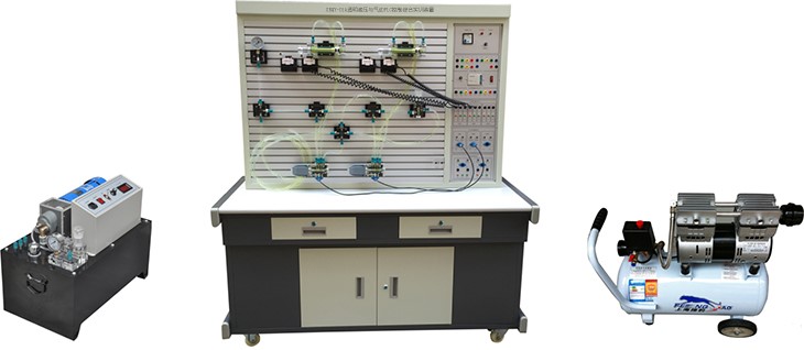 該實驗臺為鐵質雙層亞光密紋噴塑結構。美觀大方,堅固耐用,操作方便;九渲脼椋簹鈩訉嶒炘1;氣動實驗PLC控制模塊1套;低噪音空壓機1臺;液壓實驗元件1套,液壓實驗PLC控制模塊1套;液壓實驗泵站1臺。(計算機根據(jù)學校要求另行配置)